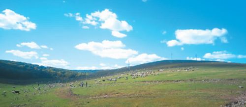 “这次,我看到了草原。那里的天比别处的更可爱,空气是那么清鲜,天空是那么明朗,使我总想高歌一曲,表示我满心的愉快。在天底下,一碧千里,而并不茫茫。四面都有小丘,平地是绿的,小丘也是绿的。”已是初秋,我所见到的并不像老舍先生《草原》中描写的“一碧千里”,但雀跃的心情却是一样的。