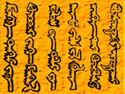 传统蒙古文字使用蒙古文字母书写,属拼音文字类型,脱胎自粟特-回鹘字母系统,初创于成吉思汗时代,经多次改善充实至北元后期成型,为中国境内多数蒙古族使用。蒙古文有29个字母,在回鹘文字母基础上创制,蒙古文字母表示元音的5个,表示辅音的24个,拼写时以词为单位上下连书,行款从左向右【图为贵由汗(1246-1248)印文】。