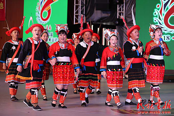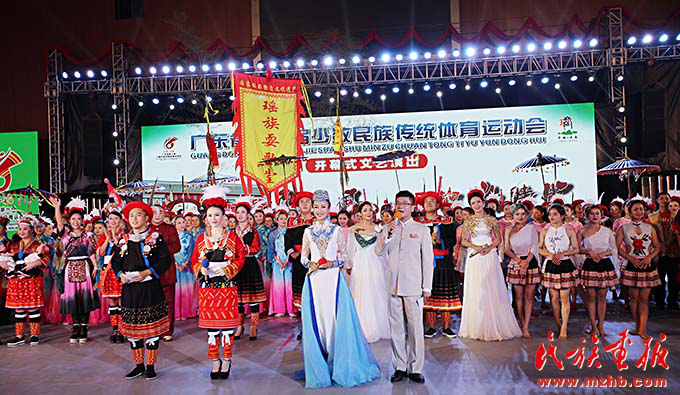 广东省第六届少数民族传统体育运动会在清远市连南瑶族自治县开幕。图为开幕式文艺演出现场