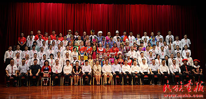 开幕式前,广东省领导接见参加广东省第六届少数民族传统体育运动会的少数民族运动员代表、教练员和裁判员代表,并合影留念
