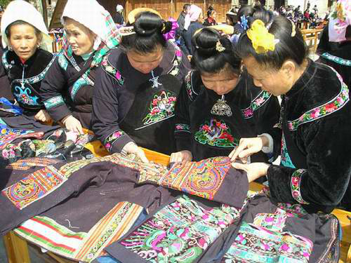 苗族的纺织工具和纺织程序都比较简洁,都没有像织蜀锦那样的提花机。但是,苗族妇女们凭借自己的勤劳和智慧纺织出品种多样、绚丽多姿的彩锦。