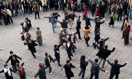 有时,吃过丰盛的粥,兴奋地人们还会用即兴表演,随着维吾尔精典的“十二木卡姆”音乐的优美旋律,很多人欢快地跳起了舞蹈。