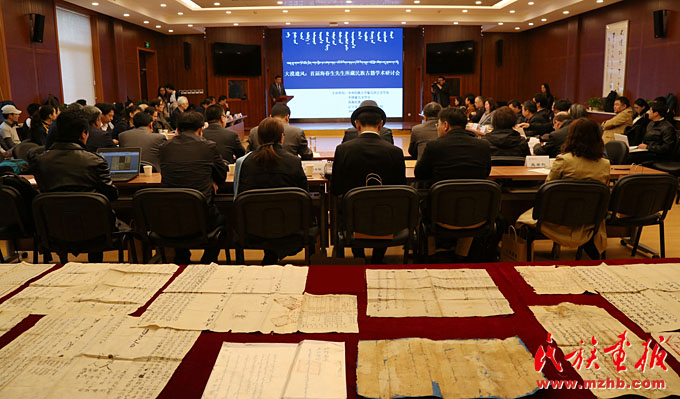 由中央民族大学蒙古语言文学系、中国蒙古史学会、青海民族大学藏学院、辽宁省阜新市政协文史馆共同主办的“大漠遗风:首届海春生所藏民族古籍学术研讨会”于2018年4月14日在中央民族大学举办。来自北京大学、中国人民大学、西北民族大学、青海民族大学、敦煌研究院、中国藏学研究中心、中国民族图书馆、辽宁省档案馆、内蒙古少数民族古籍与《格斯尔》征集研究室以及日本东北大学、日本大谷大学等高校和研究机构的专家学者近70人参加会议。