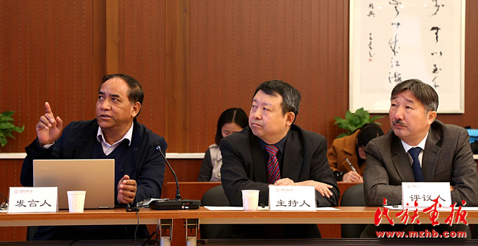 中国藏学研究中心宗教研究所吉美桑珠研究员(左)就海春生所藏的部分藏文历史档案文献价值发言