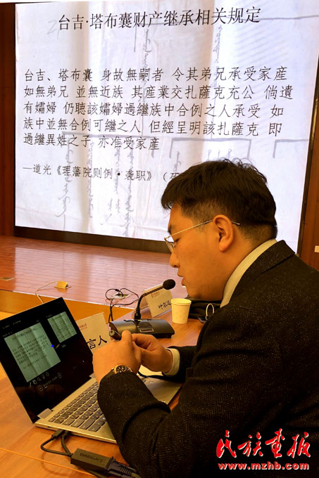 内蒙古大学包呼和木其尔博士以一份塔布囊财产相关档案为例,作了“清代喀喇沁土默特地区贵族塔布囊的财产与继承”相关内容的主题发言