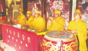 另外,像千山寺庙音乐、北武当寺庙音乐、贝叶经制作技艺以及一些道教音乐等,除了有职业僧侣传承外,还有一部分是世俗的传承人,但寺院仍是其主要的传承和活动场所,其目的也主要是为寺庙及宗教信仰服务的,偶尔也服务于世俗社会。如宁夏北武当寺庙音乐“渣渣子”项目的国家级代表性传承人徐建业虽然幼年曾经出家,但早已还俗,不过仍担任宁夏平罗县佛教协会会长,目前“渣渣子”的主要运用场所还是在北武当庙,主要传承者也还是寺里的僧人。