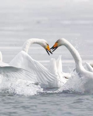 每年的10月下旬到第二年3月,1000余只大天鹅迁徙到青海湖越冬,给冬季的青海湖平添了一道亮丽的风景。在葛玉修看来,大天鹅有着让人难以抗拒的美丽,是珍贵的观赏鸟。从不同视角拍摄、记录大天鹅是葛玉修最开心的事。