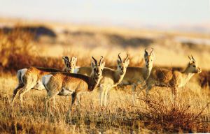 中华对角羚中景,摄于海北藏族自治州刚察县。