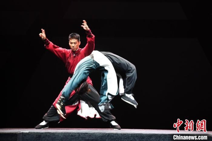 在第三幕中,赵维元与黄春强饰演的武师黄成发在佛山商会激烈开打。只见黄成发一记飞脚,把茶案踢出几米之外,赵维元从容接案,随即一掌拍下酒杯应声而起。双雄夺杯上演“打手桥”,一推一让、一拳一脚有程式,有特点,尽显南派武术风范。