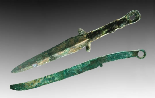 朱开沟遗址出土鄂尔多斯式青铜短剑、青铜刀