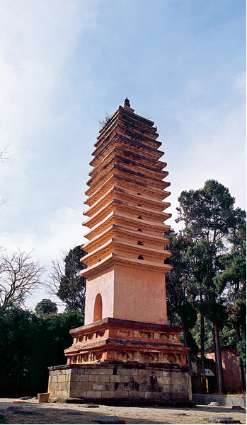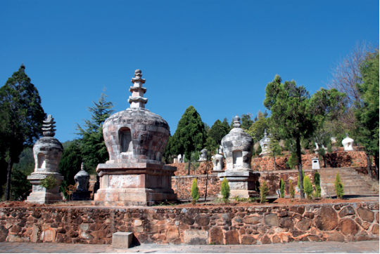水目山位于祥云县城之南20公里的马街镇境内,海拔2627米,是云南开创较早的佛教圣地之一,始开发于唐宪宗元和8年(公元813年)。传说,开山始祖普济庆光禅师“以杖卓之,而清泉涌出,因名水目”。开堂之日,有龙虎出现在堂前,法席既盛,有“衲子千余,尼姑八百”。相继还有南诏段氏国公仁懿太后之父、天子之外祖高氏净妙澄禅师与侄子皎渊智宏禅师等出家水目山,使水目山极盛一时。自唐以来,水目山依山建有八寺九庵,其中八寺为地藏、金龙、大觉、宝华、普贤、塔盘、常住、倒影。古塔鼎立,殿宇辉煌,还用铜铸造了三世佛像和开山祖师普济庆光禅师的金身像以及大钟等法器。至明清两朝,继有高僧智源、惠庵、惠泽、彻庸、无住、非相、知空、容光、普间、熊高等,继续培修佛寺,增建楼阁,复修三塔(前、中、后塔),使水目山成为滇西的佛教圣山。