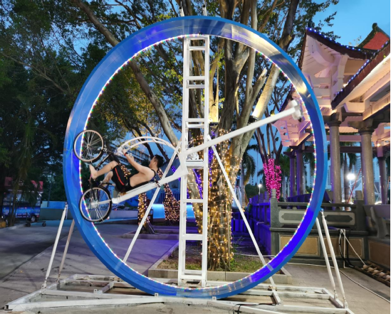 太空环可以同时体验刺激与娱乐,提升孩子的运动趣味性,三维太空环是由训练飞行员的模拟装饰演变而来的新型游乐设备。人们可以任意旋转,速度时快时慢,使游玩者体会到三维立体空间自由旋转的特殊感受,不是在一个平面上,而是在一个固定的立体空间里旋转,既锻炼身体又趣味无穷,深受广大青少年朋友欢迎,占地面积小,操作维护简单,惊险刺激,它是一项勇敢者的运动,也是绝无危险的运动,自由的三维旋转和飘然欲仙的意境,再加上绚丽多彩的外型,令人迷恋不已。
