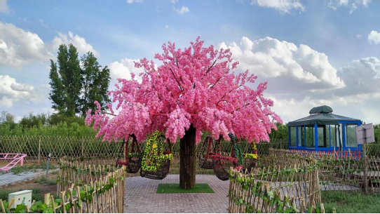 樱花摇椅可以同时体验视觉冲击与娱乐,深受广大游玩者的喜爱,它是以六个花束座椅而形成,顺时针摇转,庞大的花束形成花海,优雅的座椅沉浸花海仿佛置身仙境,保证在安全使用同时提升舒适性,其加固机构保证安全并带来最好的视觉体验,主要结构由钢架机构构成。