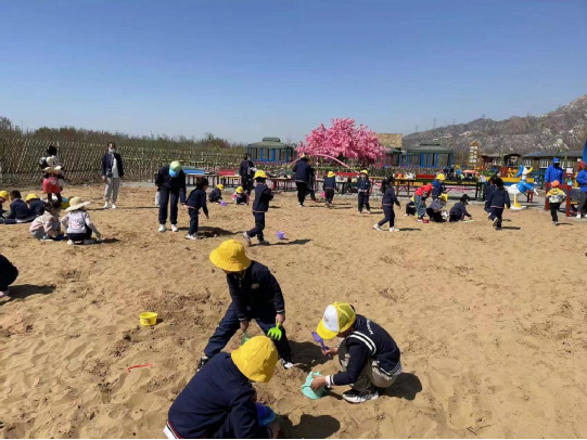 沙漠寻宝,沙既是固体的,又是流体的,它变化无常又易被掌控,它无穷尽的形态和用之不尽的玩法,从本质上满足了儿童内心的需求和操作中的创造性。