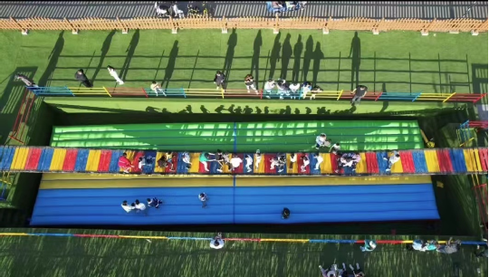 适合团队合作娱乐、挑战和拓展,极大的增加了项目的趣味性和感召力,能调动游客的参与度,达到个人拓展,体能训练的目的。网红桥主要是根据力学原理制作而成,参与网红桥游戏的玩法非常简单,多人站在桥上向左或者向右用力,使桥随着大家用力的方向左右摇摆,为了不跌落到桥下面的水坑中需要用尽办法在桥上保持平衡。需要足够的胆魄、平衡力才能玩的更加轻松自如,随着吊桥摆动时注意缓冲,保持好重心,膝盖弯曲保持在130度左右。吊桥摆动时,不能处在最大幅度位置,一般幅度摆动最大的是在重量较大的桥中间那段。