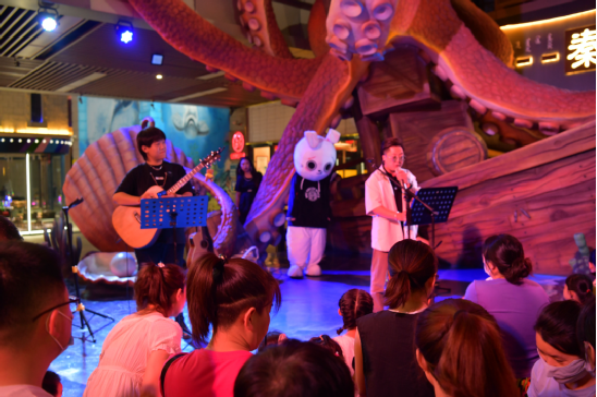 特色街区的夜间表演。