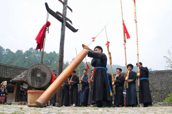 1、高排芦笙,这是方祥地区苗族的芦笙,是世界上最高的芦笙。雷山地区的芦笙多数是三支为一付,唯方祥地区的芦笙与众不同,高达五六米,七支以上为一组,所以叫高排芦笙,声音宏亮。