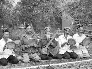 民间艺人弹奏阿拉其热瓦甫(左三)