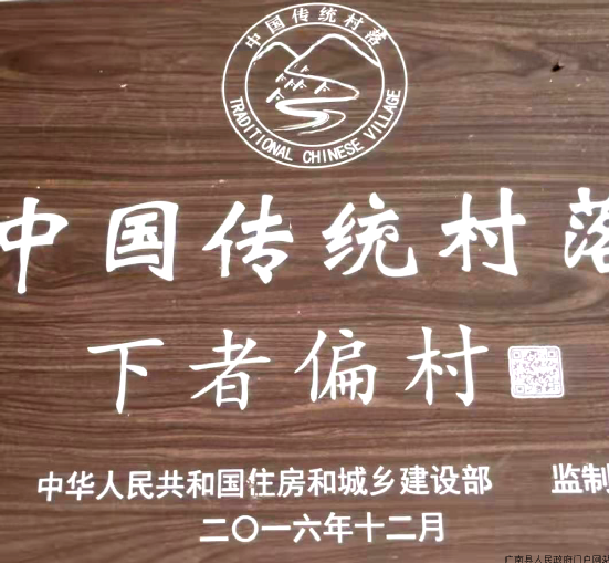 荣获中国传统村落下者偏村牌匾(乡政府提供)