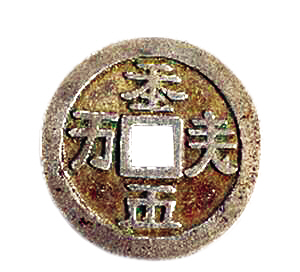 1977年6月在辽上京遗址出土的契丹银币,正面有4个阳文契丹大字,为原铸;背面有8个阴文契丹大字,每两个字一组,为后刻。有专家把银币正面4个契丹大字考释为“天朝万顺”,其顺序是上—下—左—右。
