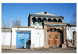 伊犁地区维吾尔族人的房子,因那里寒冷多雨,住宅多用砖、土木建造坡顶房屋。房屋与果园之间,用葡萄棚之类的绿篱分隔开,绿篱与房屋外廊搭接,组成凉爽的户外生活场所。门廊有挂落和栏杆,用浅蓝作墙面和顶棚的底色,木门和窗板为装饰性木雕。室内陈设很讲究,墙上挂壁毯、窗悬大幅织花窗帘,充满浓浓的民族风情。