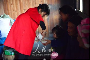一般要到快过春节的时候,男方家才专门请人去接女方来洗糯米、打糍粑,新娘方能在夫家住上一夜;在来年农忙时节,又接女方来帮忙,夜里仍不能在男方家留宿,帮完忙当晚即回去,只有待到女方有身孕后,新娘才到夫家长住。图为11月16日夜,新娘潘芝银家为准备婚礼,灯火彻夜长明。