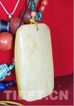 在市场中,大多数商家都以摩擦的方式来鉴别蜜蜡的真假。他们的观点是,真的蜜蜡在干燥的情况下与皮肤摩擦,会散发出“松香”一般的气味。另外,有店主告诉我,随着时间的流逝,真蜜蜡不会产生颜色的分离或流失,但假货则会有颜色流失的现象。