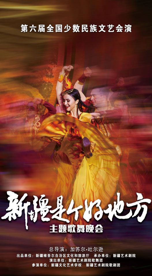 9月11日,由新疆维吾尔自治区文化和旅游厅策划指导,新疆艺术剧院统筹打造,新疆艺术剧院歌舞团创作的主题歌舞晚会《新疆是个好地方》亮相第六届全国少数民族文艺会演,在央视网和国家民委门户网站进行展播,向全国观众讲述了多彩的新疆、团结的新疆、大美的新疆。