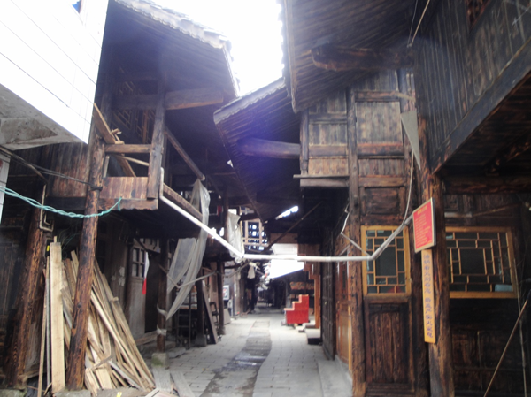 古街改造中,村政府对残损严重的吊脚楼进行全面修复,将现有用水泥修建的建筑物改建成吊脚楼古墙体,不能进行改建的予以拆迁,恢复土家族传统神龛,配饰窗花等。对吊脚楼的维护以在柱头、板壁上刷桐油保护为主。对于古街的街道,用青石板铺设路面,并在街道下铺设1450米的排污管道。