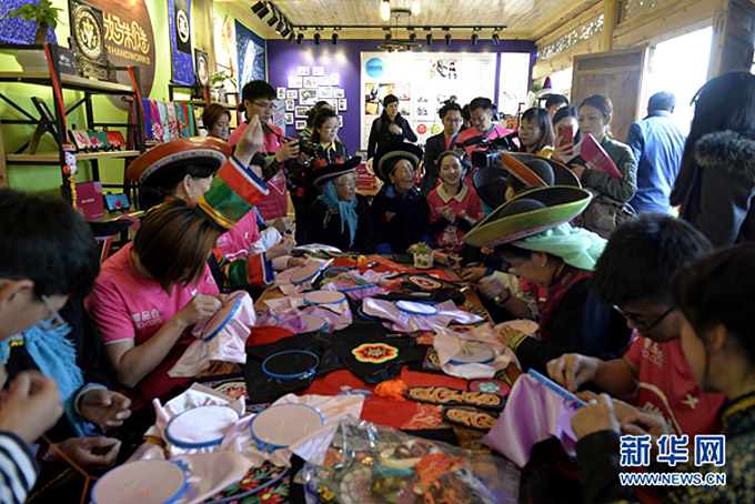 土族人的盘绣历史悠久,工艺独具匠心,有较高的文化价值,2006年被列入第一批国家级非物质文化遗产名录。盘绣源于青海省互助土族自治县,十八大以来,互助县土族自治县将劳动力培训转移和市场需求结合起来,发展具有地方民族特色的土族盘绣培训项目,把发展土族盘绣作为扩大农村妇女增收就业的渠道之一。目前,全县有2万余名妇女从事土族盘绣工艺品的制作,使盘绣这一古老的手工艺得到传承和发展,通过一针一线间实现了土族文化与世界文化的交流。