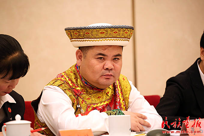 十九大代表、青海省互助土族自治县林川乡党委书记李占魁(土族)在青海省代表团讨论会上发言 (滕俊 摄影)