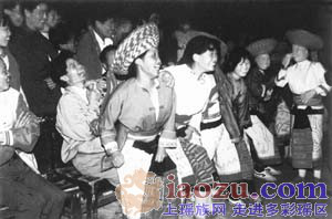 随着阵阵高涨的欢笑、叫喊,人们躁动了。坐在男人们腿上的姑娘,一个个弹而跳起,又重重地落下来,坐到男人们的腿上。如此蹾下又跳起,跳起又蹾下,在一片欢叫声中反复地循环。