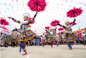 2月25日,广西壮族自治区融水苗族自治县芦笙协会共300余人来到该县白云乡瑶口村竹口屯,与村民举行“打同年”联谊活动。