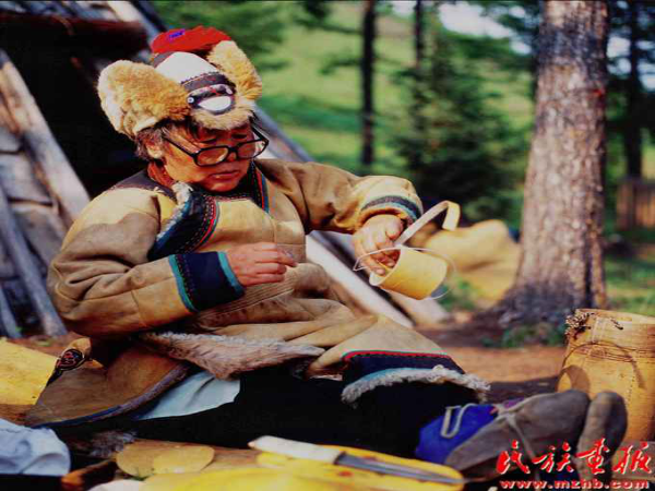 鄂伦春妇女的黄色狍皮服饰