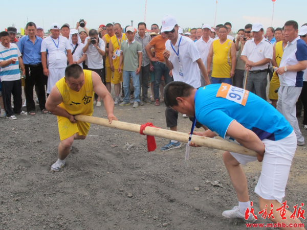 顶杠是赫哲族传统体育项目,节日活动期间举行了顶杠比赛
