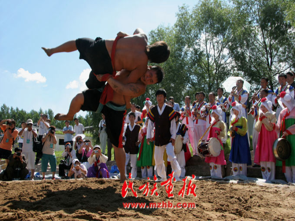 摔跤是朝鲜族男性最喜欢的民俗游戏和体育项目之一