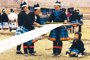 白裤瑶女人勤快的名声,早就传遍了山里山外。祖祖辈辈,人们所用的布料,所穿着的衣衫裤子,无不是白裤瑶女人自己种、自己纺、自己织、自己缝、自己画、自己染和自己绣出来的。