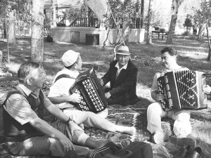 海扎托拉(右一)和朋友们一起拉手风琴