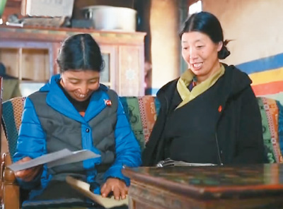 卓嘎、央宗姐妹十分激动地翻看习近平总书记的回信(央视截图)