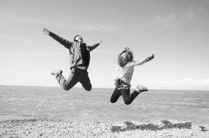 青海湖位于青海省海北藏族自治州刚察县南部,是中国最大的内陆咸水湖。碧波浩瀚,鸟翼如云的青海湖,盛夏时节平均气温仅15摄氏度,为天然避暑胜地。图为游客在青海湖畔纵身跃起。 吴光于摄
