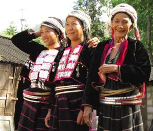 德昂族以藤饰为美,这种习俗从古沿袭至今,集中表现在妇女腰间缠着的几十圈精致的藤篾腰箍。