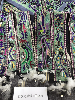 展出的苗族对襟绣花百鸟衣。图片摄影:高莹