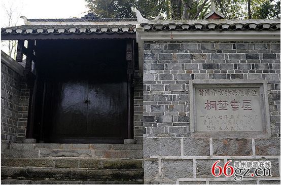 桐埜书屋为近年遗址上重建的一栋依山而建的穿斗木质明清建筑。门头上悬挂着贵州当代著名学者、书法家戴明贤老先生用苍劲自然的行书题写的“桐埜书屋”四个大字匾额。走进大门,堂屋的正中央悬挂着这儿曾经的主人周起渭和夫人的画像,令人肃然起敬。