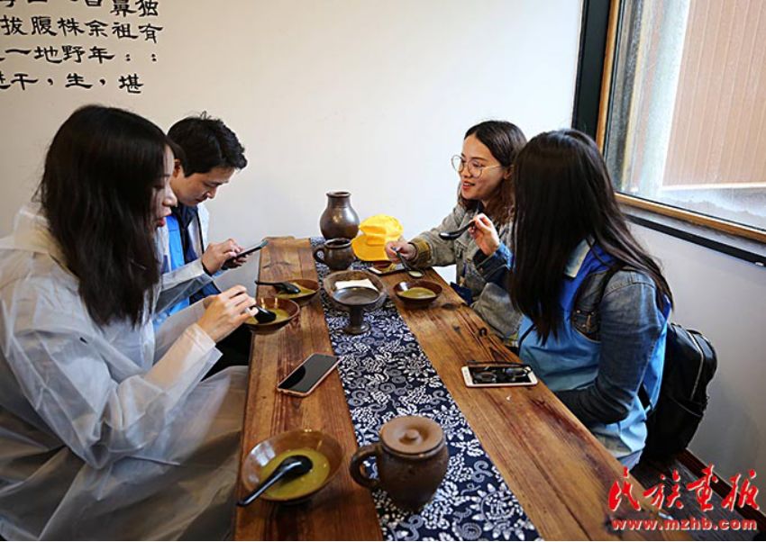 在金佛山顶,游客品尝“金佛山咖啡”油茶