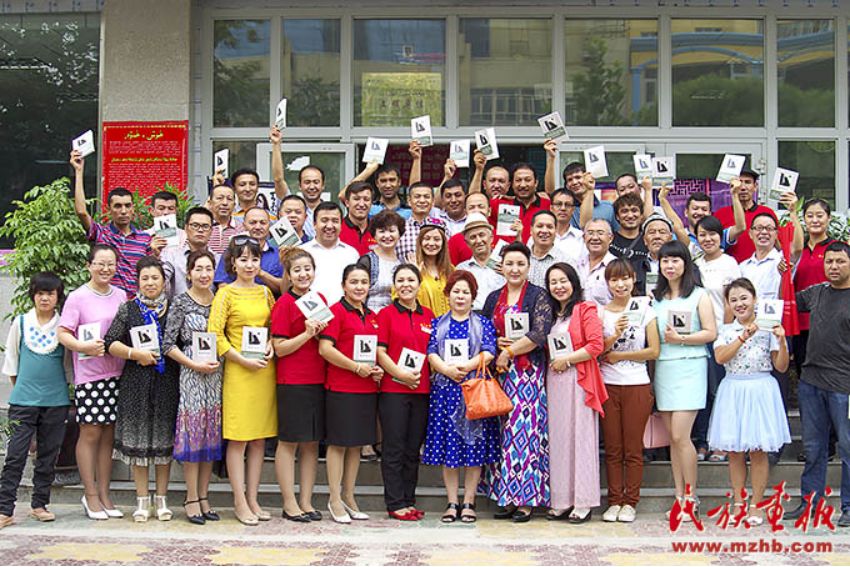 帕蒂古丽(中)出席中国少数民族作家学会第三届二次代表大会
