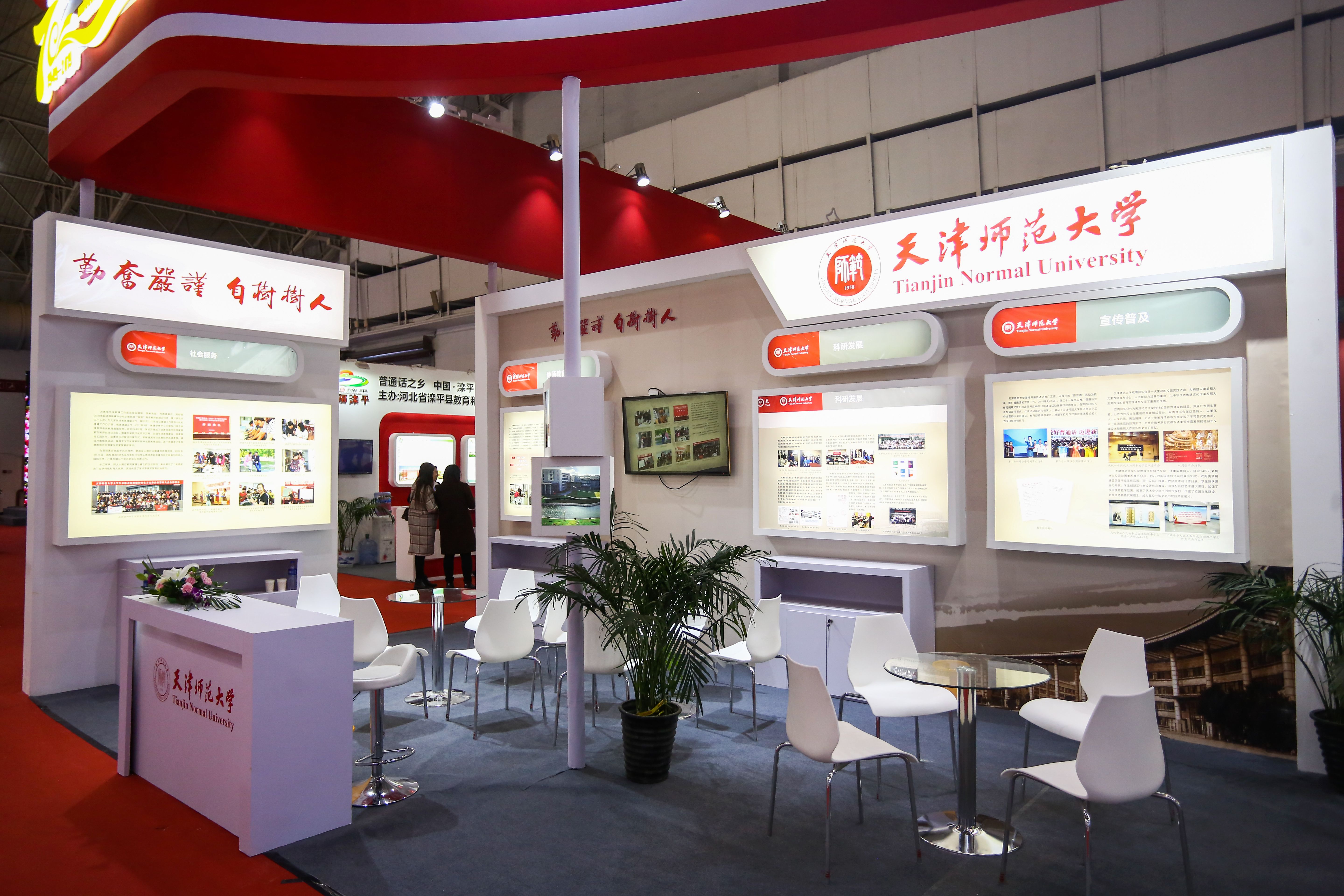 语言企业和机构成果展汇聚了科大讯飞、声望听力、北大方正、商务印书馆、人民教育出版社、北京语言大学语言资源高精尖创新中心、北京师范大学汉字研究与现代应用实验室、首都师范大学文学院、语文出版社、外语教学与研究出版社、华语教学出版社、广州大学、北京印刷学院、天津师范大学、山东师范大学文学院、鲁东大学、广西民族大学、贺州学院、沧州师范学院等著名语言文化机构和企业,充分展示语言科技、文化传播等方面的最新成果。科大讯飞展示了新一代智慧课堂、语言扶贫APP等最新人工智能及智能语音产品,并在主论坛发布“全球中文学习平台”;北京语言大学语言资源高精尖创新中心带来了北京冬奥会语言服务行动计划标志性成果之一“冬奥智能问答机器人”,未来将在冬奥会上大显身手;北大方正“中华精品字库工程”深度融合书法艺术与信息技术;北京印刷学院展示的国庆70周年志愿服务视觉形象设计凸显了学校在设计艺术和语言创意领域的优势实力和社会影响力;广州大学中文经典文化治疗亚健康的技术通过VR实现唐诗宋词植入沉浸式场景,从而干预体验者的心理和行为潜能,吸引了不少参观者;柔宇科技最新产品“汉记”将柔性显示与传感技术应用到对外汉语教学;新译科技展示了依托百亿级优质语料数据,以软、硬件为载体,让智能翻译成为服务于国家“一带一路”的多语传播平台;华文众合展示了智慧书法教室系统,致力于中华民族传统书法文化的传承和发展;声望听力展示了应用世界前沿科技的助听器产品、听力检测设备及高标准、专业化、一站式听力解决方案。