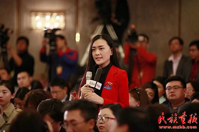 在全国两会媒体记者会上,王金梅代表中国网现场提问。