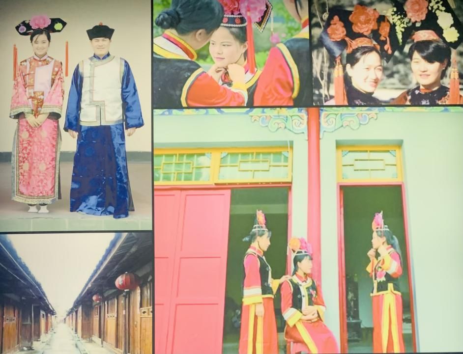 身着民族服饰的满族男女和满族民居(许觊佳摄于贵州省博物馆)