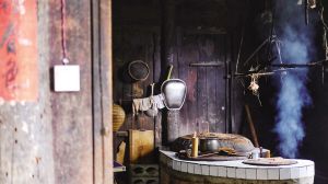 镜头的取景框内,青菜在“古井”潺潺流水中淌去泥沙,沿着苔藓步道,装在背篓里被送入小院;阳光透过窗棂洒下,熏黑的灶台,柴火劈啪作响,趁着火候,几下翻炒,白雾便混合着农家饭香腾腾升起。