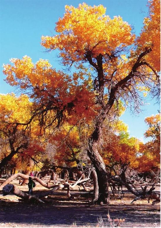 胡杨是当今世界上最古老的杨树品种,被誉为活着的化石树。据说胡杨树活着一千年不死、死后一千年不倒、倒后一千年不朽。铮铮铁骨千年铸,不朽品质万年颂。四子王旗境内生长着我国第三片胡杨林,千百年来它们矗立北疆,守护着大漠边关,被当地牧民誉为大漠守护神。